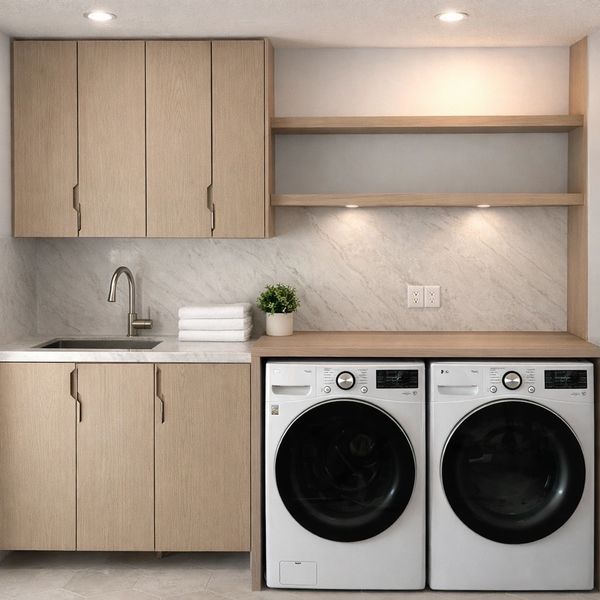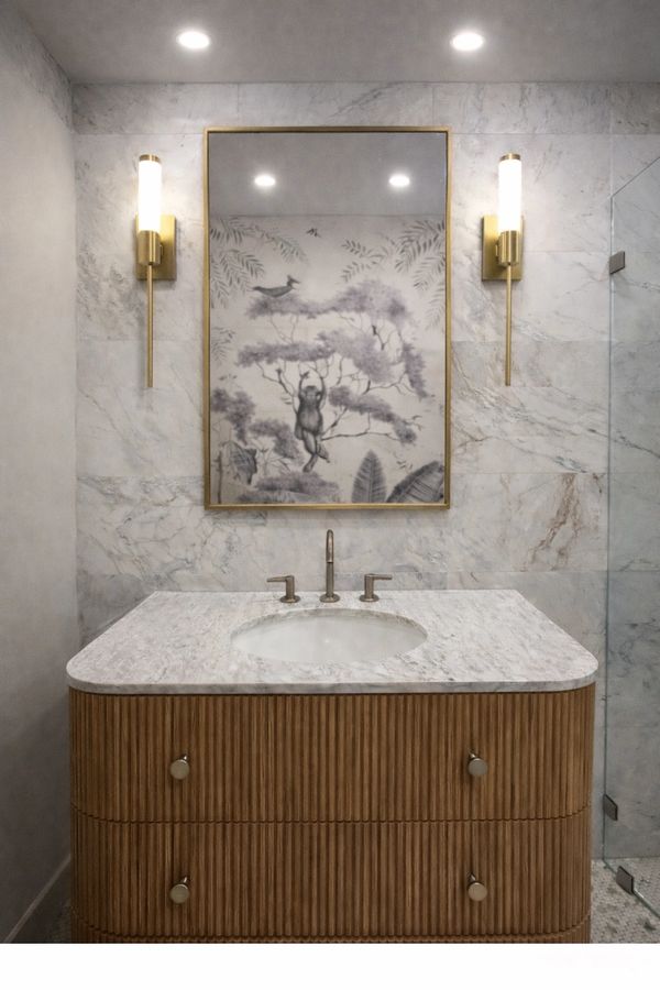 A carefully designed powder room renovation that optimizes space while maintaining a modern, timeless aesthetic and everyday functionality.