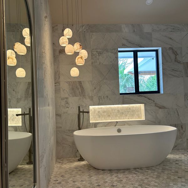 This master bathroom renovation was designed as a refined spa-inspired retreat, centered around a freestanding tub integrated within a spacious shower enclosure. Natural marble surfaces were selected throughout to enhance continuity, light, and timeless elegance.